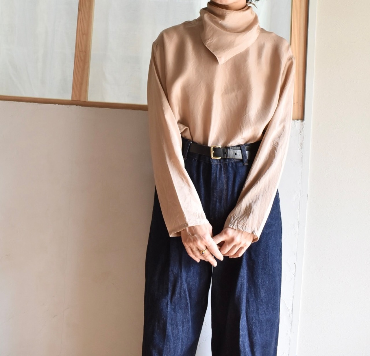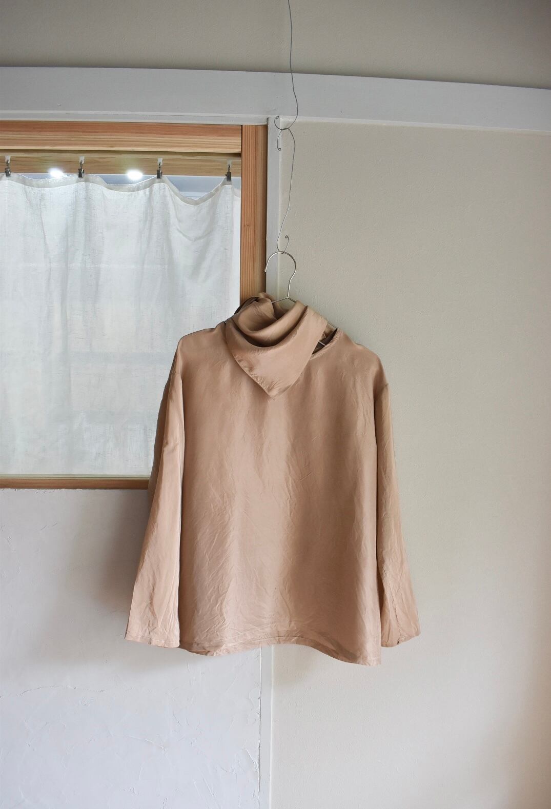 シルク素材のとてもシンプルな長袖トップス、