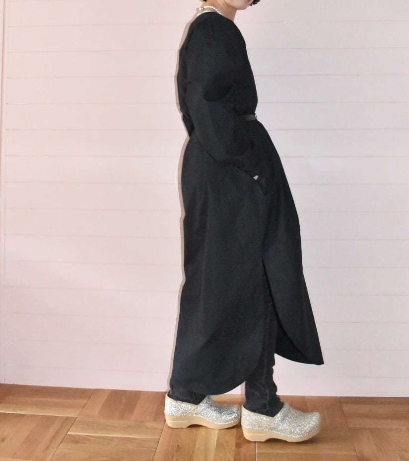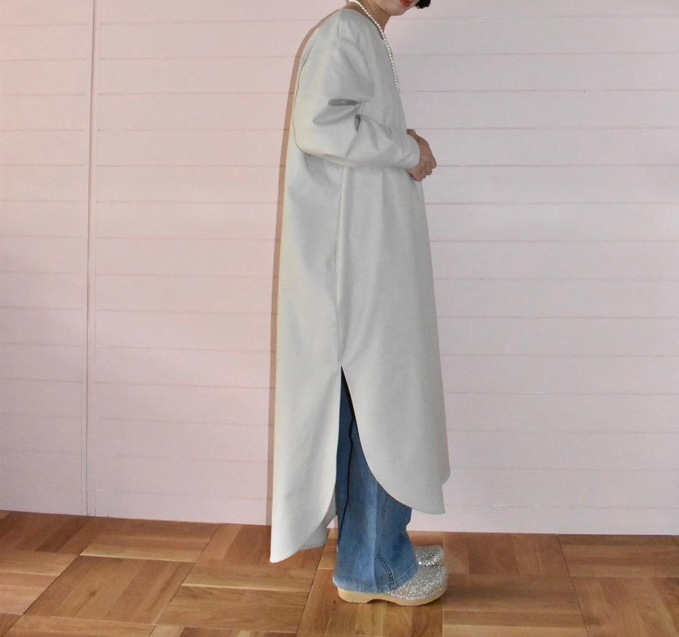 裾は後ろが少し長く、ラウンドしたヘムライン、ラウンドに合わせてスリットも入っているので動きやすいです。