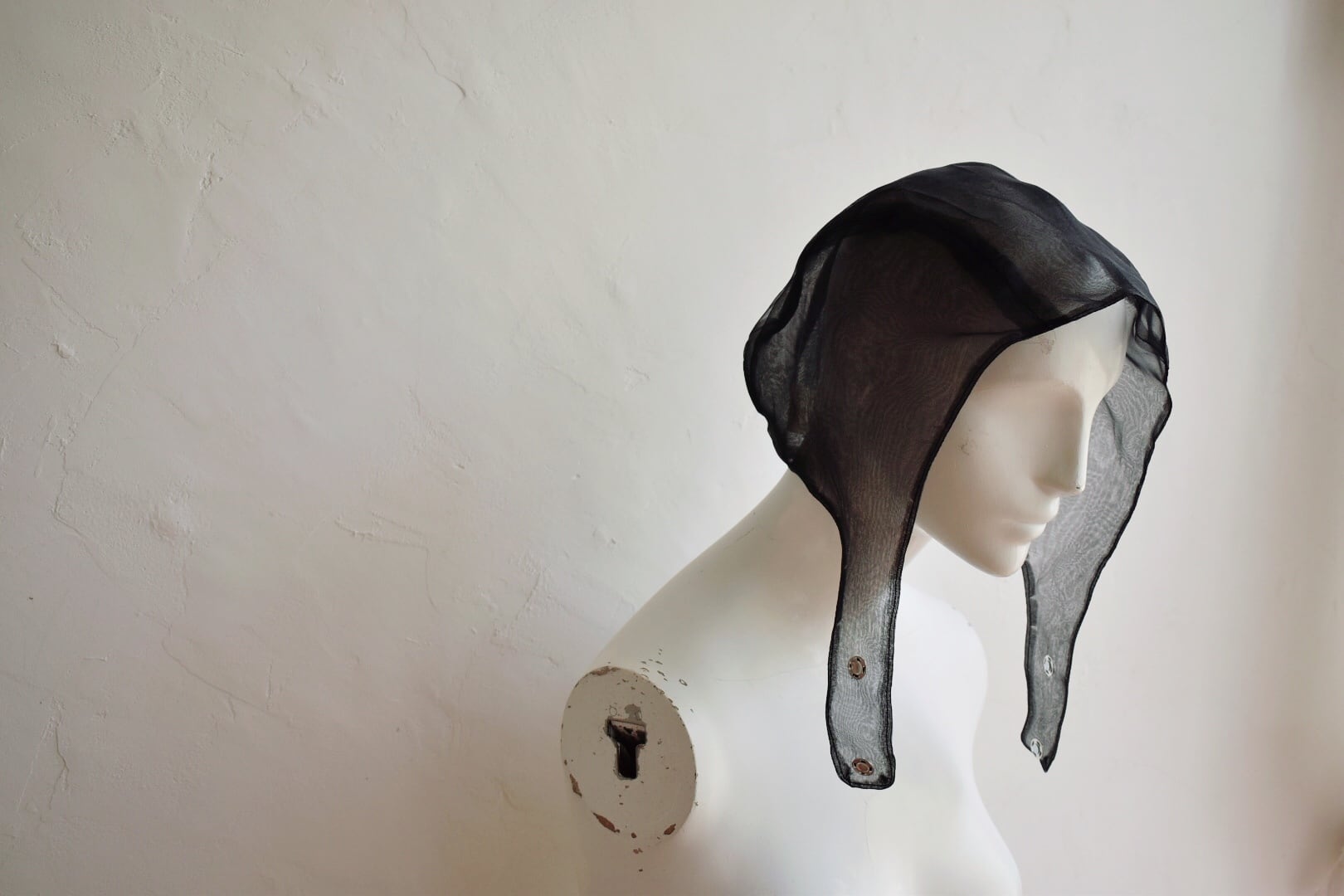 とても薄い素材の為、破れないようにマグネットスナップボタンを使いました。外す際は生地を強く引っ張らずに取り扱い下さい。