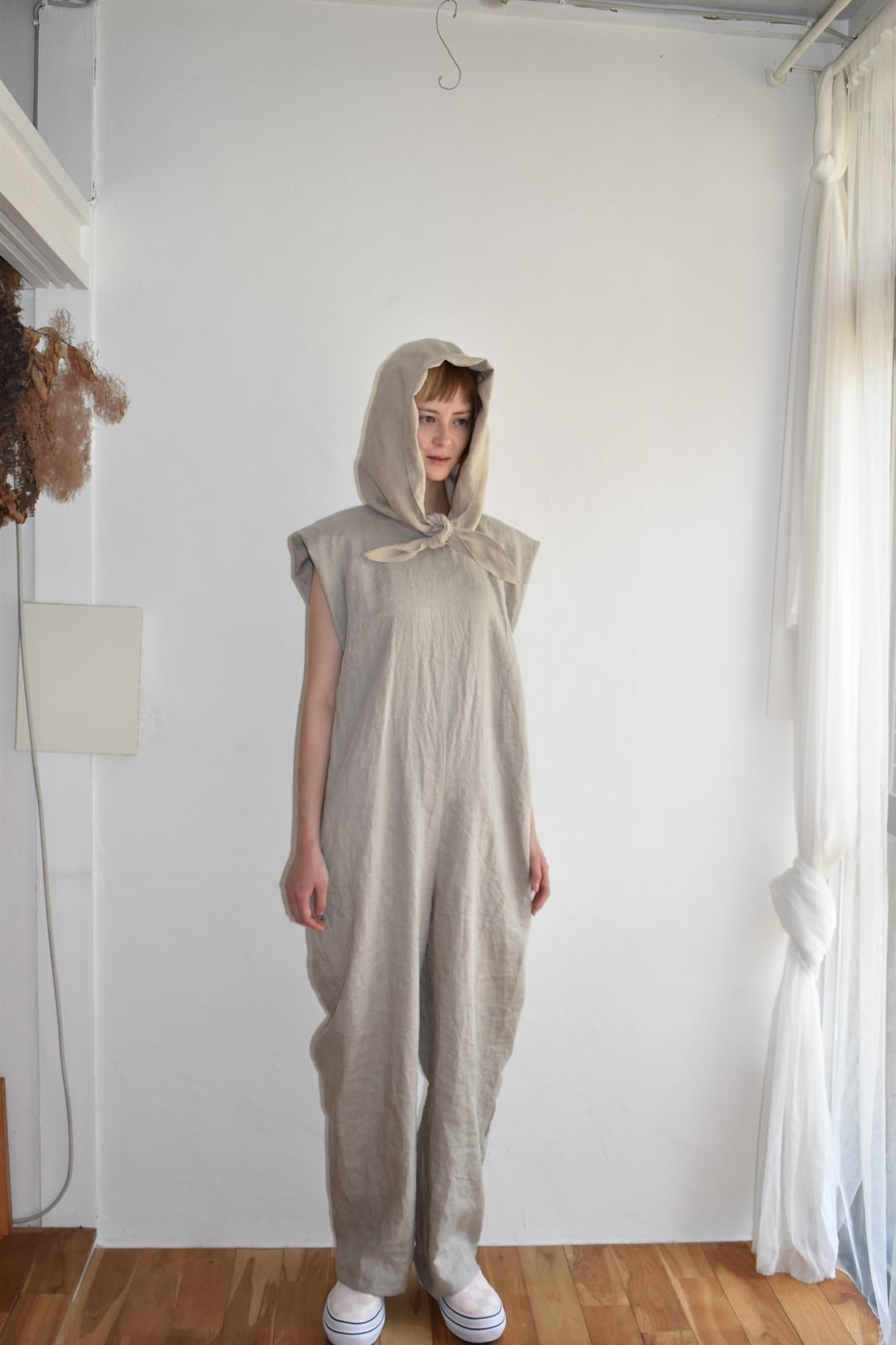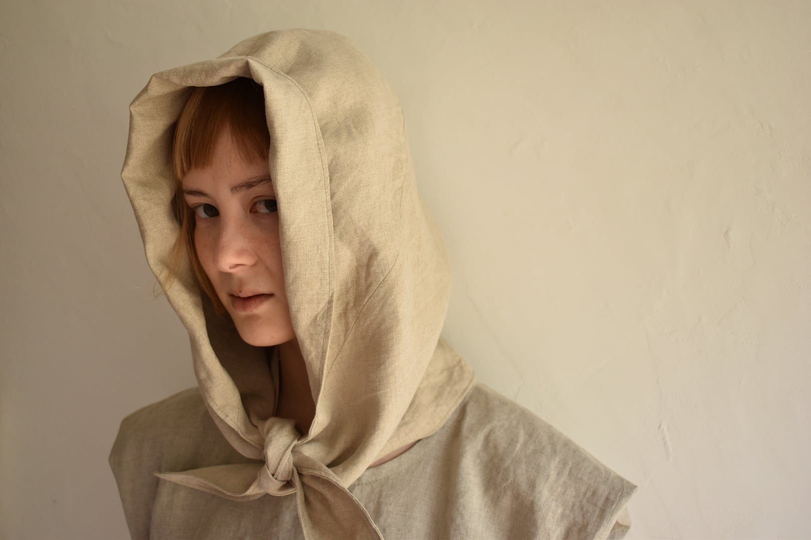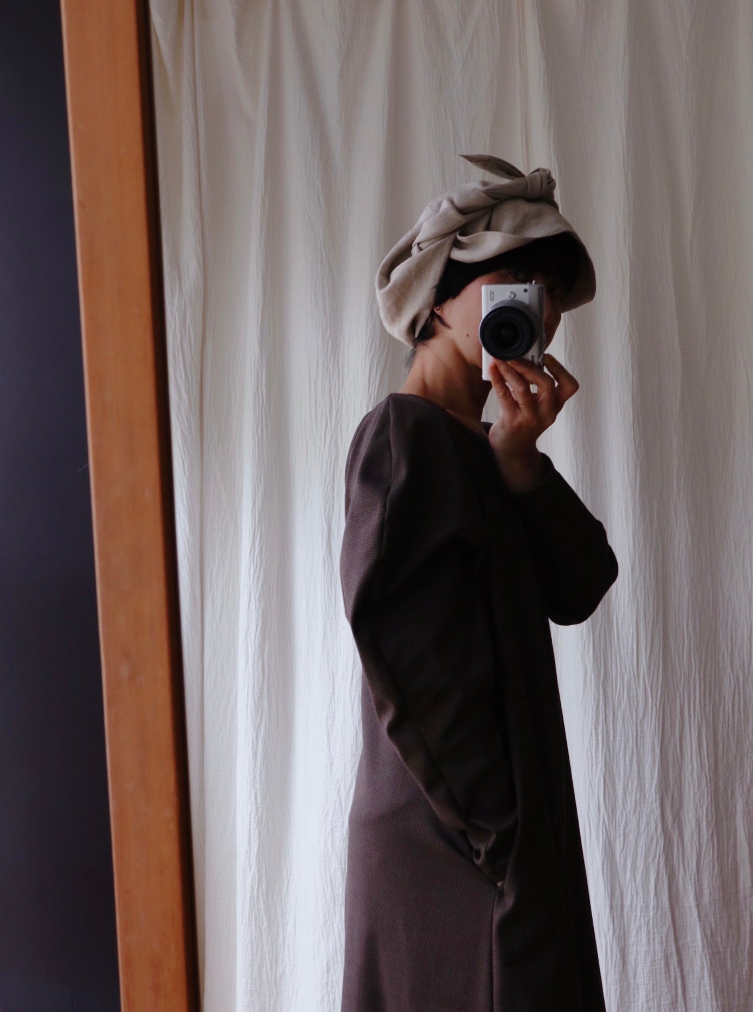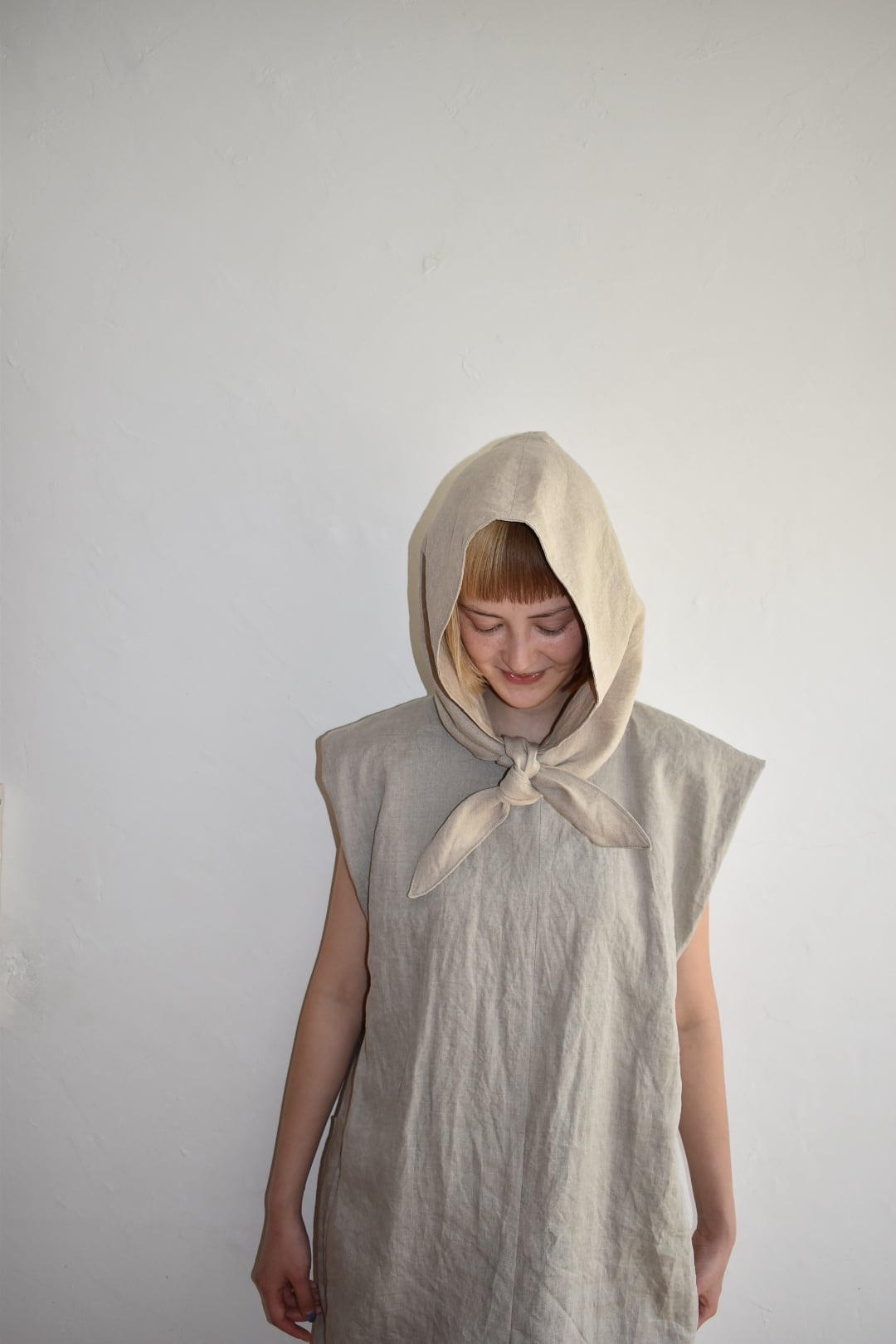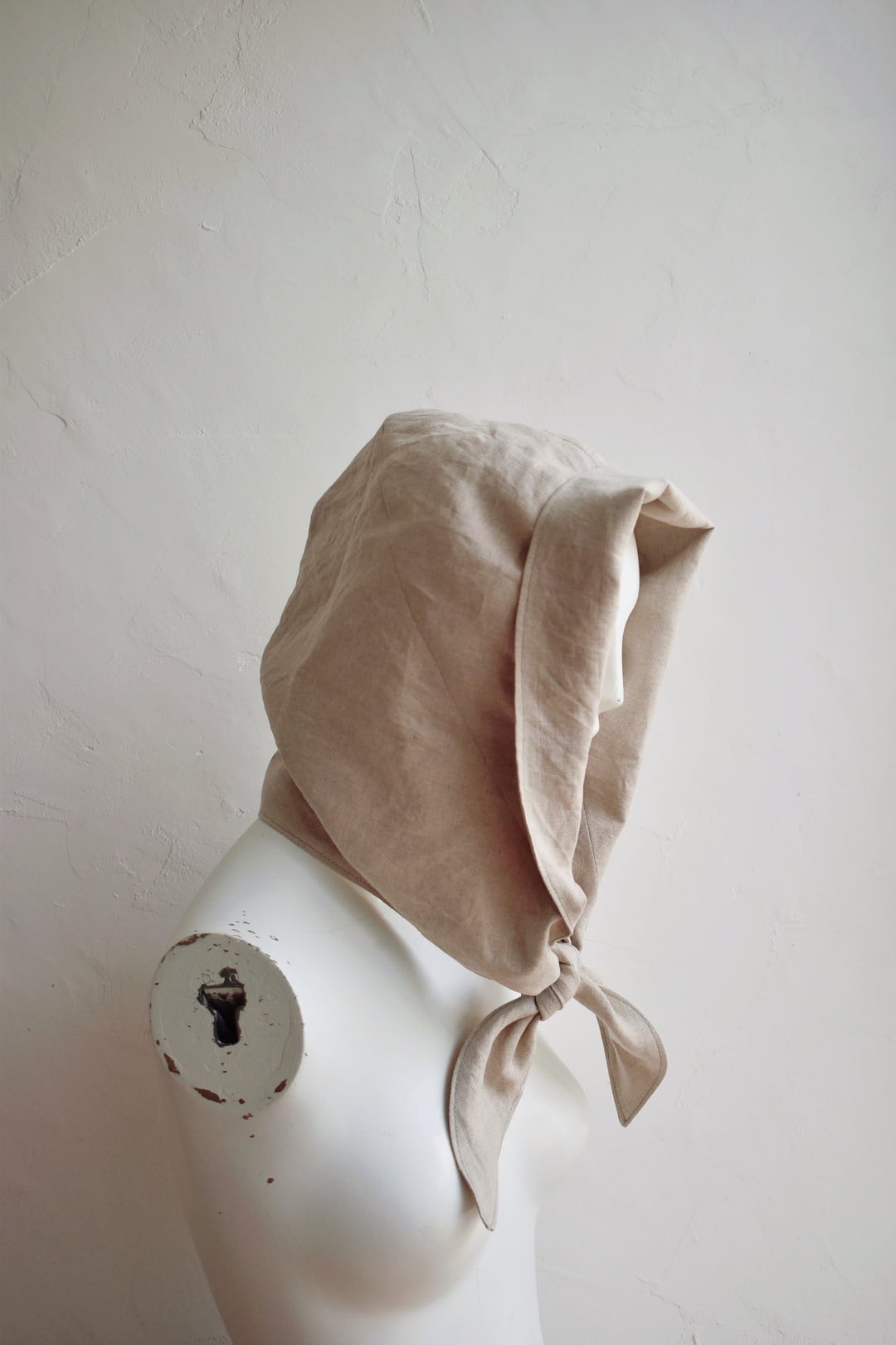 リネン素材は少し硬めの素材感ですが、使っていくうちに柔らかく馴染んでくるかと思います。最初のうちは頭の上で結ぶなどアレンジがしづらいかもしれません。
