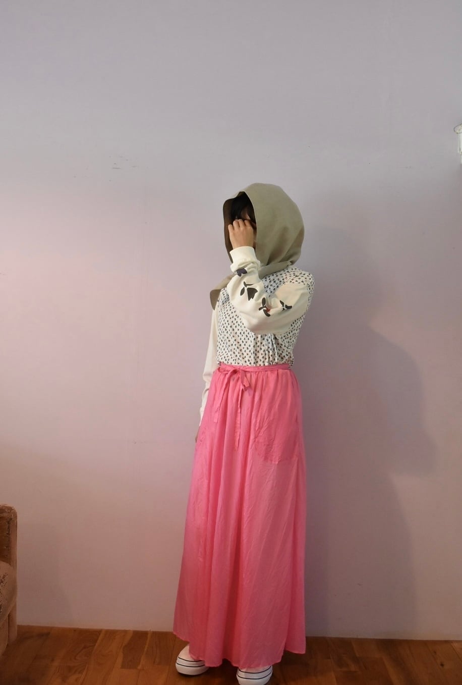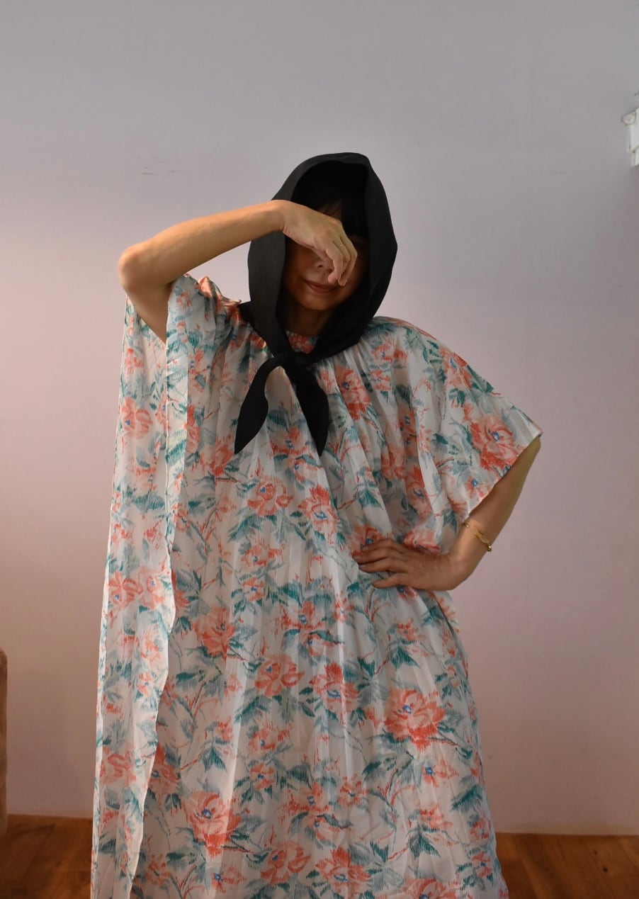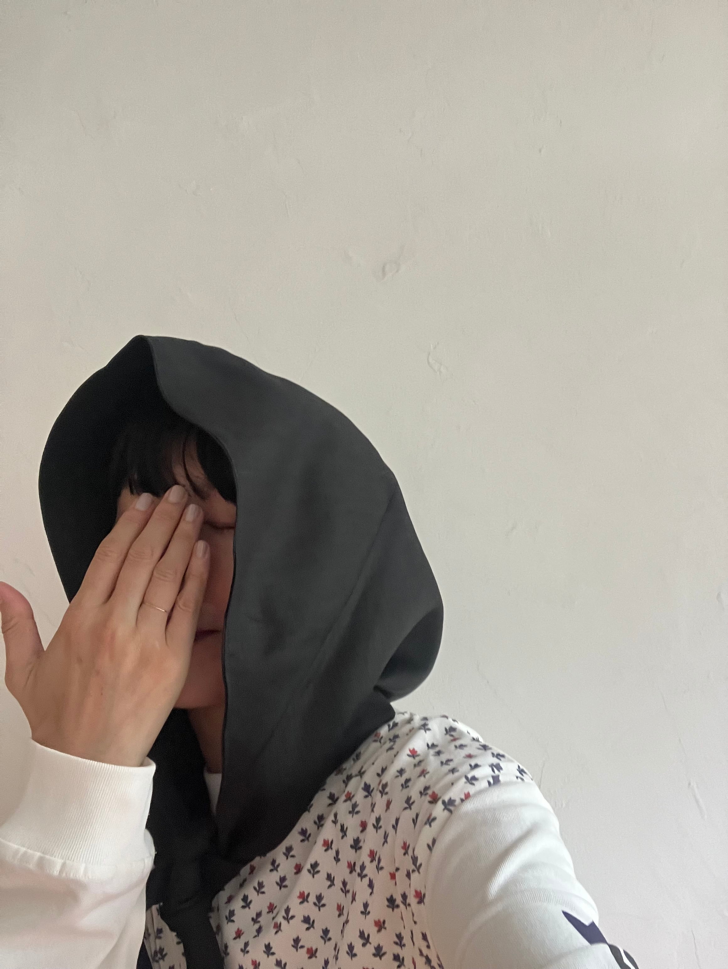 普通にほっかむりとして使ってもいいですし、前のところを折り返したり、サイドの長い布を上で結んだり、帽子に合わせたり、自由にアレンジしてみてください。