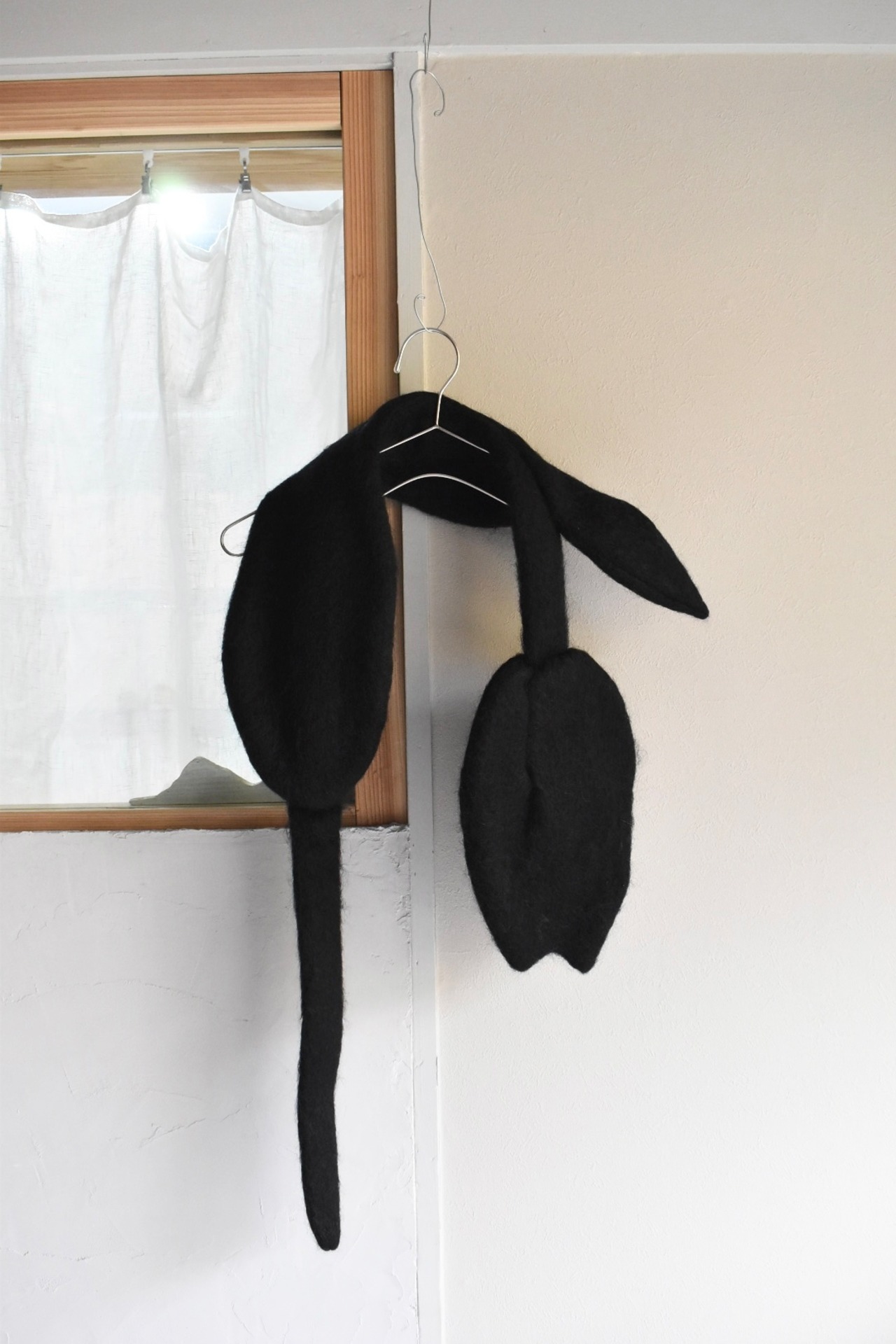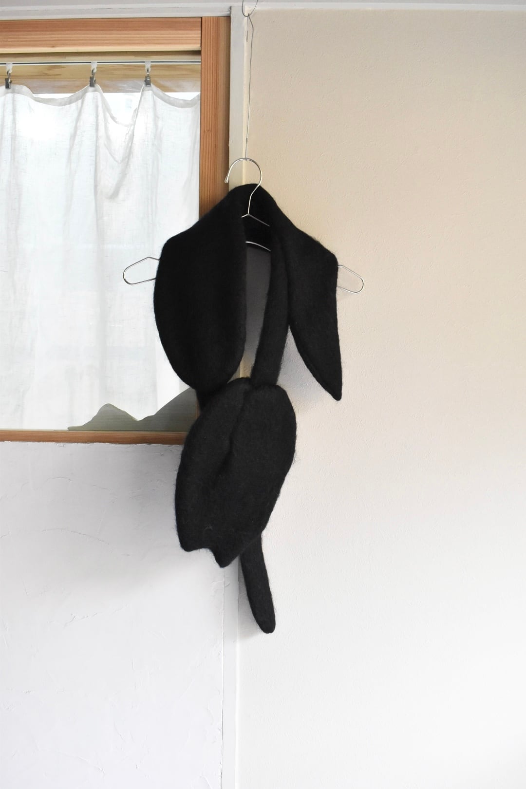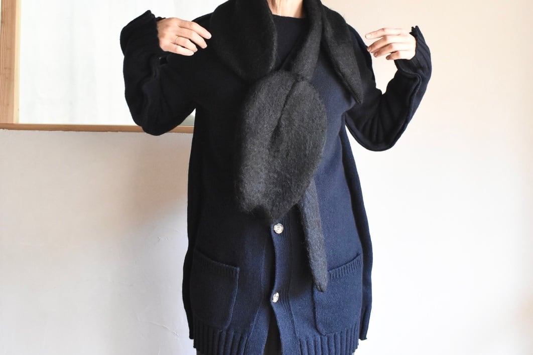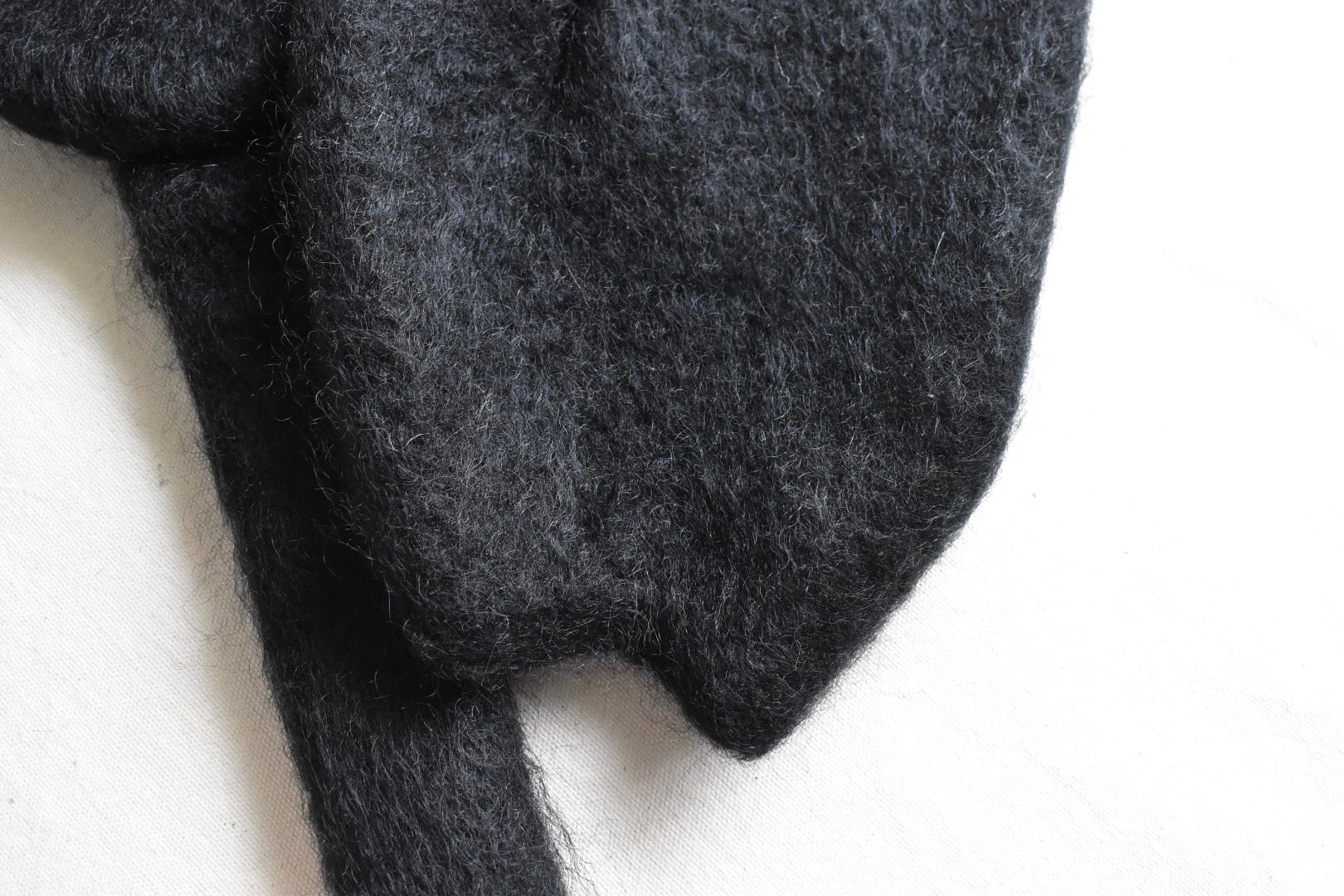毛足が長い、黒に近いダークネイビーカラーのウールシャギーモヘヤ素材です。