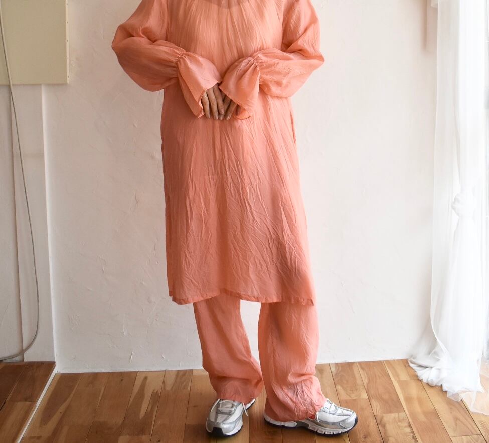 キュプラ素材のパジャマパンツ風のイージーパンツです。