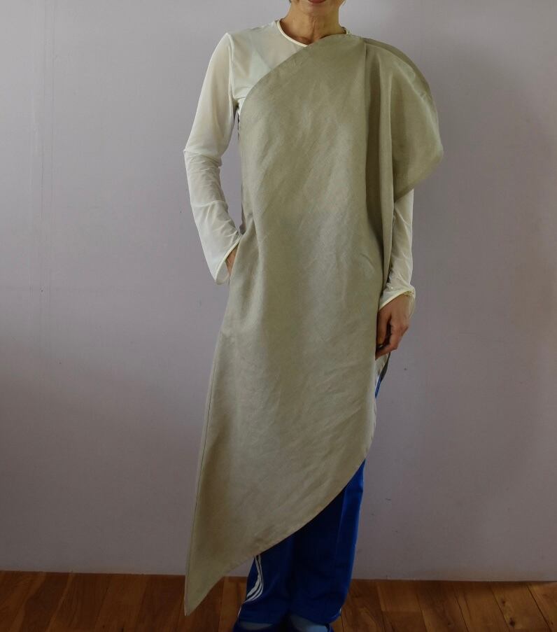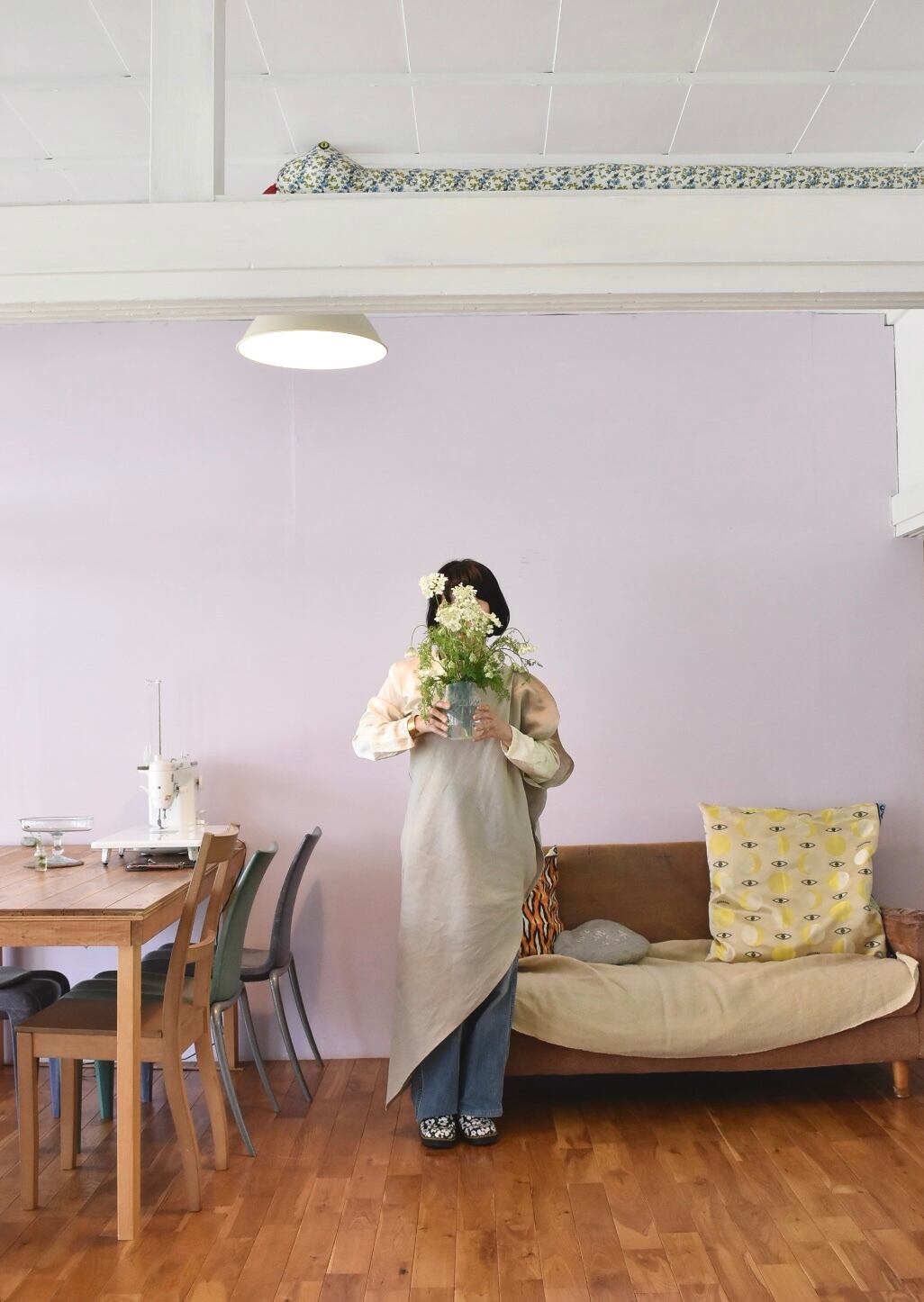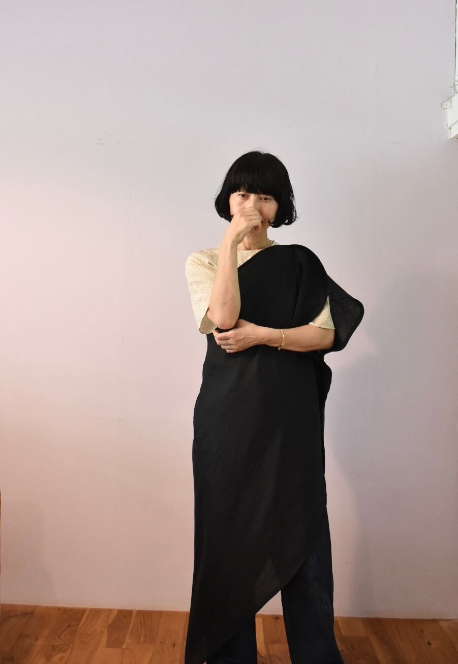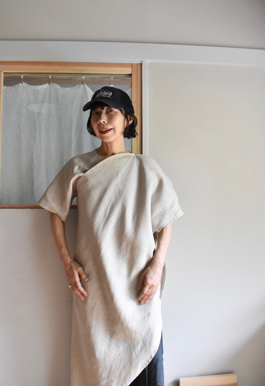 バイアスになるように裁断しているので身頃に少しだけ伸縮性があります。