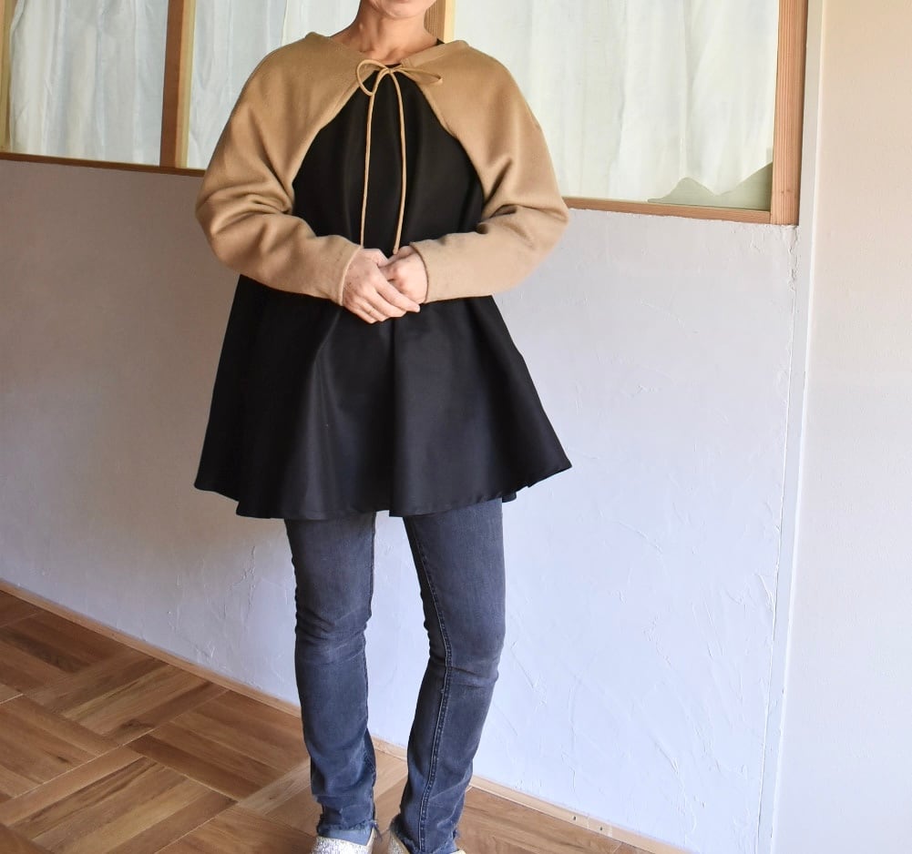肩から下に広がるので後ろ姿はケープを着てるみたいでかわいいです。