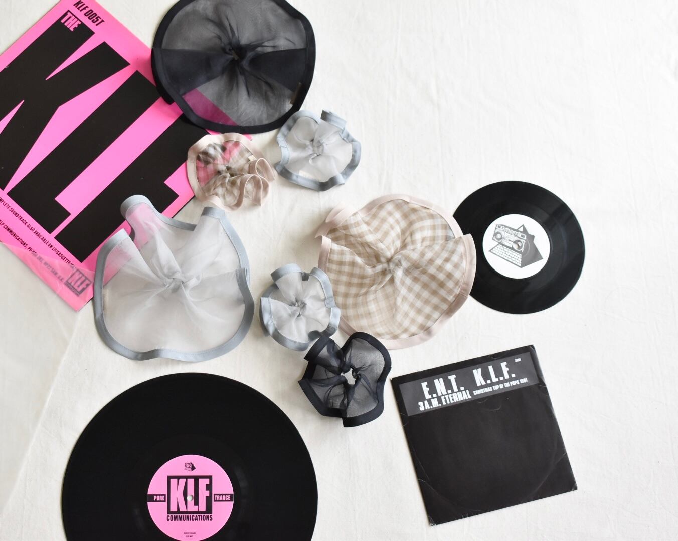 大きな12インチLPレコードシュシュと、小さいドーナツ盤シュシュ